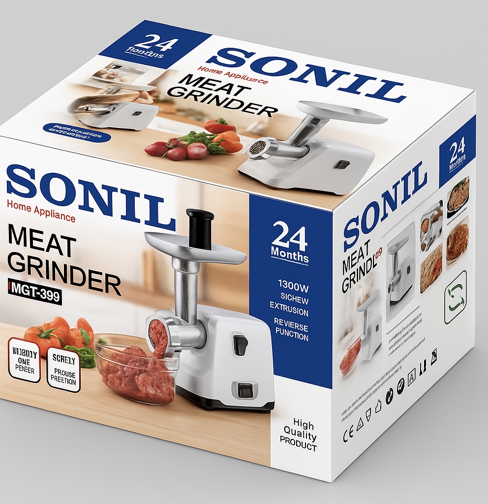 چرخ گوشت سونیِل مدل MGS-1685 یک دستگاه قدرتمند با موتور 1800 وات است که برای استفادهی خانگی طراحی شده. این محصول با قابلیت چرخ کردن تا ۱.۹ کیلوگرم گوشت در دقیقه، سه تیغه استیل ضدزنگ و قطعات جانبی متنوع، انتخابی کامل برای هر آشپزخانه میباشد.