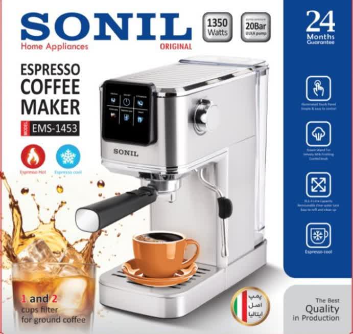 دستگاه SONIL EMS-1934 با بدنهٔ استیل برسخورده و طراحی مینیمال، برای کاربرانی ساخته شده که هم کیفیت عصارهگیری و هم سهولت استفاده را میخواهند. پمپ ۲۰ بار و فیلترهای دوگانه امکان استخراج یکنواخت و تولید کرمای مطلوب را فراهم میکنند، در حالی که نازل بخار دستی کنترل کامل روی فومگیری شیر را به کاربر میدهد. پنل لمسی روشن کاربری روزمره را ساده میکند و مخزن آب بزرگ ۱.۳ لیتر نیاز به پر کردن مکرر را کاهش میدهد.